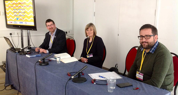 The conference got underway with a Friday night screening of Raised by Wolves, followed by a Q&A with co-creator Caroline Moran and producer Caroline Norris. It was like Inside the Actor’s Studio – only in a dark backroom in North Wales.